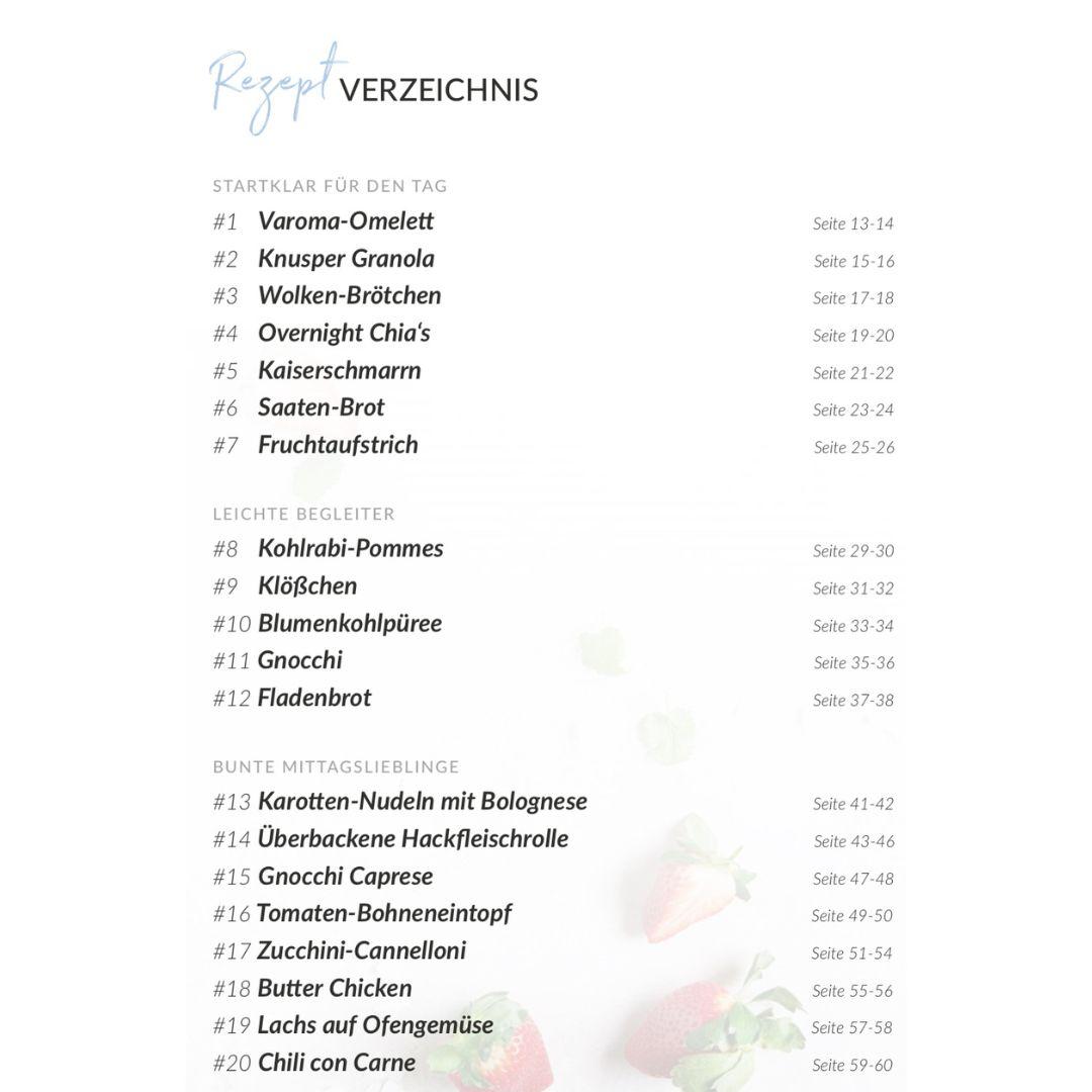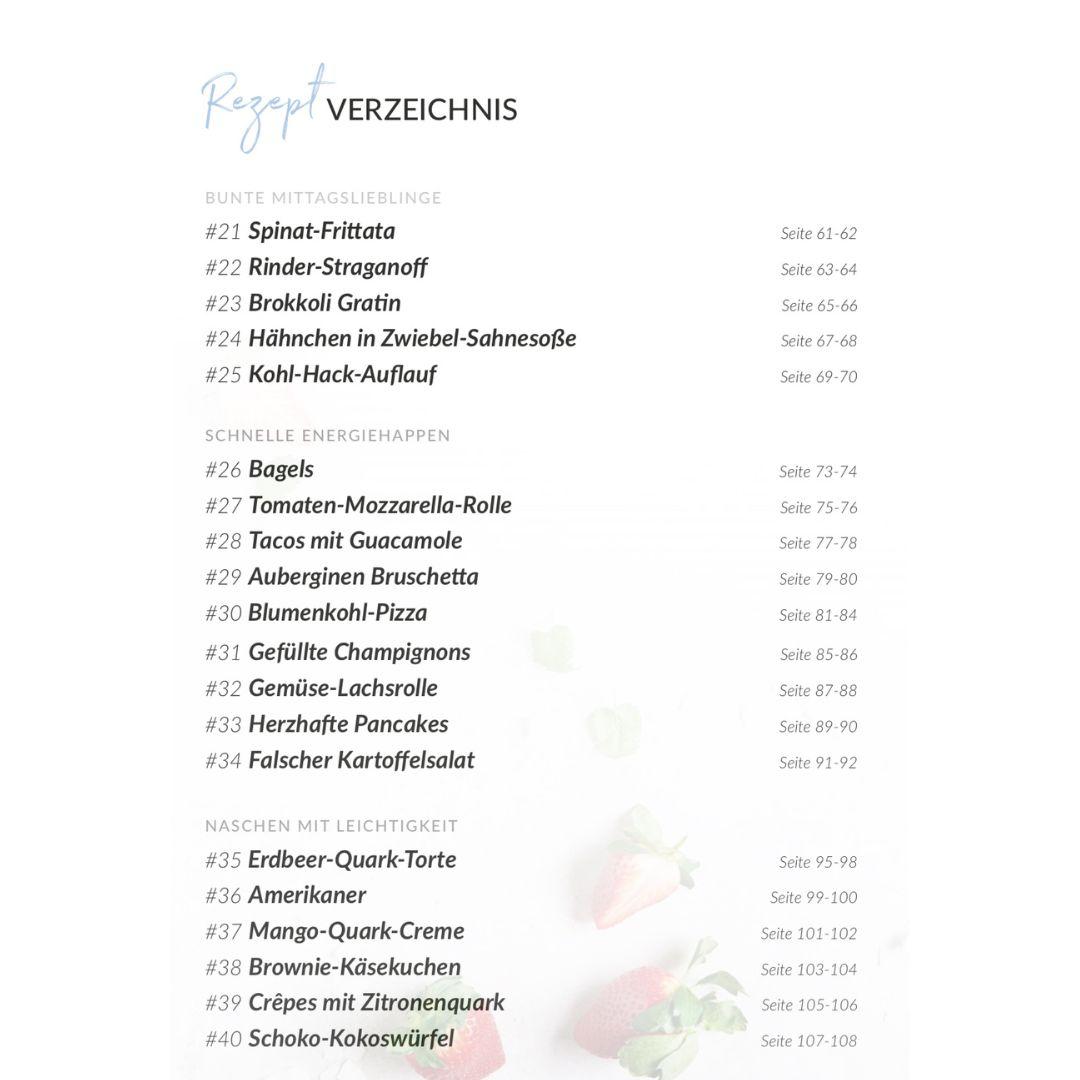 Inhaltsverzeichnis fitgemixt Rezeptbuch Lecker, Low Carb Band 2: Low Carb Köstlichkeiten aus dem Thermomix® – über 40 einfache & gesunde Rezepte für den Alltag
