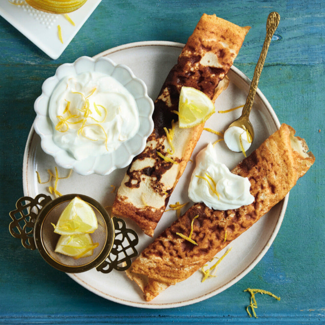 Und wenn zum krönenden Abschluss nicht auch noch ein süßer Genuss fehlen darf, wie wäre es dann mit unserem saftigen Brownie-Käsekuchen, fluffigen Amerikanern oder Crêpes mit Zitronenquark? Alle Desserts sind ohne unnötigen Haushaltszucker und natürlich passend für dich und deinen Thermomix®* konzipiert.