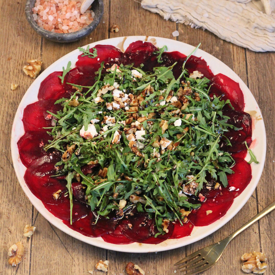 Rote-Bete-Carpaccio Rezeptidee aus ‚Gemeinsam genießen Band 2‘ – abwechslungsreiche Thermomix®* Rezepte im fitgemixt Shop sichern.
