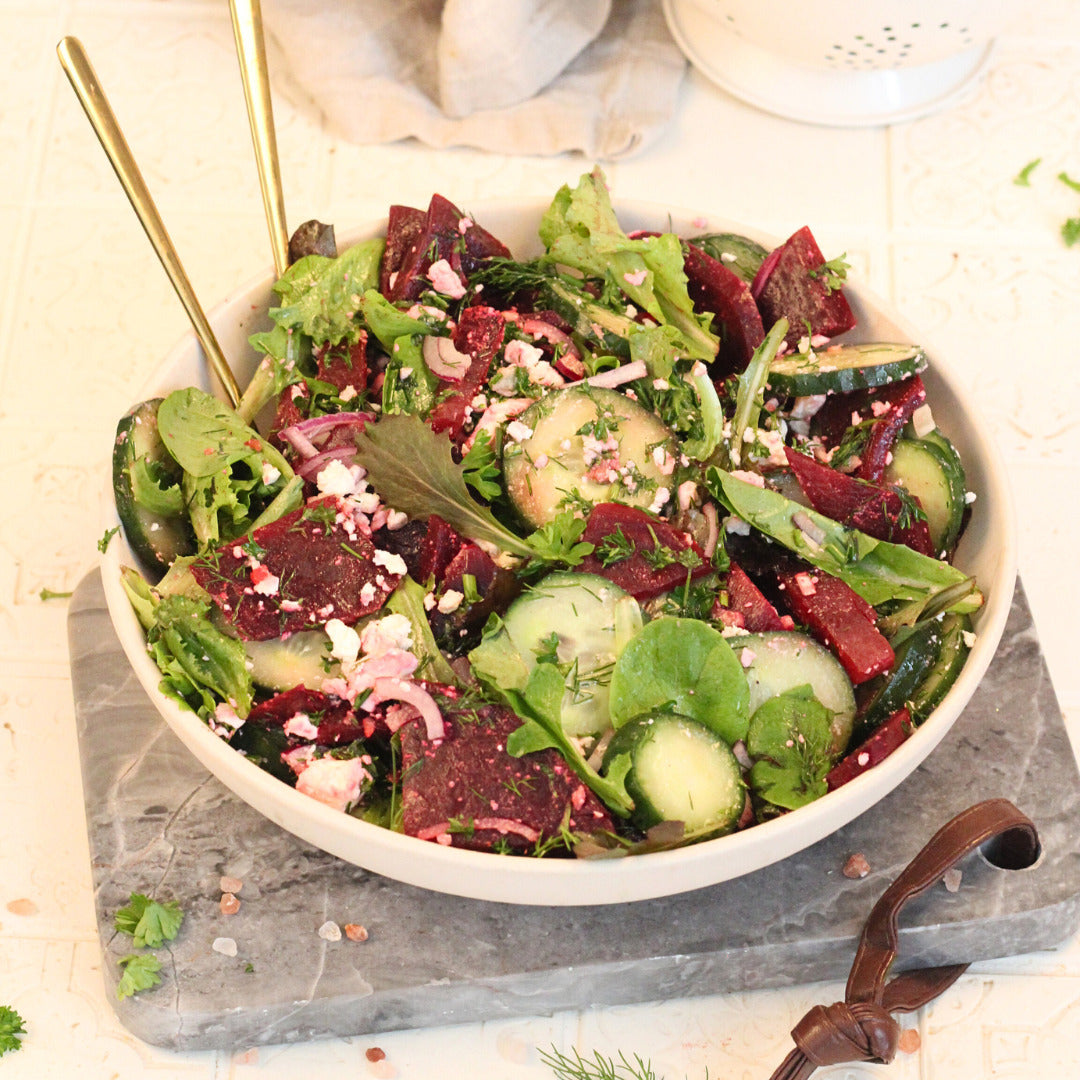 Rote-Bete-Gurken-Salat Rezept aus ‚Gemeinsam genießen Band 2‘ – frische Thermomix®* Partyideen gleich im fitgemixt Shop kaufen.