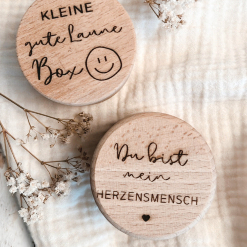 Da wir mit echtem Buchenholz arbeiten, sind Unterschiede in Maserung und Farbton normal und verleihen jeder Dose ihren individuellen Charakter. Auch bei der Lasergravur können leichte Farbabweichungen auftreten; diese sind materialbedingt und kein Reklamationsgrund. Personalisierte Artikel sind vom Umtausch ausgeschlossen.