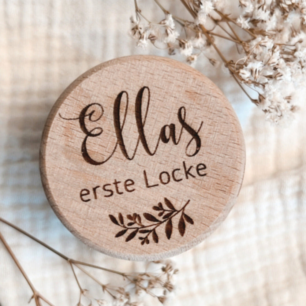 Bewahrt den ersten Lockenstrang behutsam auf. Mit Namen und ausgewähltem Motiv graviert entsteht ein kleines, herzliches Unikat – ein wundervolles Geschenk zur Geburt oder Taufe.