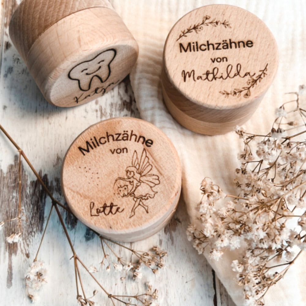 Ein sicherer Ort für die winzigen Zähnchen und die großen Erinnerungen. Personalisiert mit Name und einem unserer vielen Motive wird daraus ein ganz persönliches Andenken.