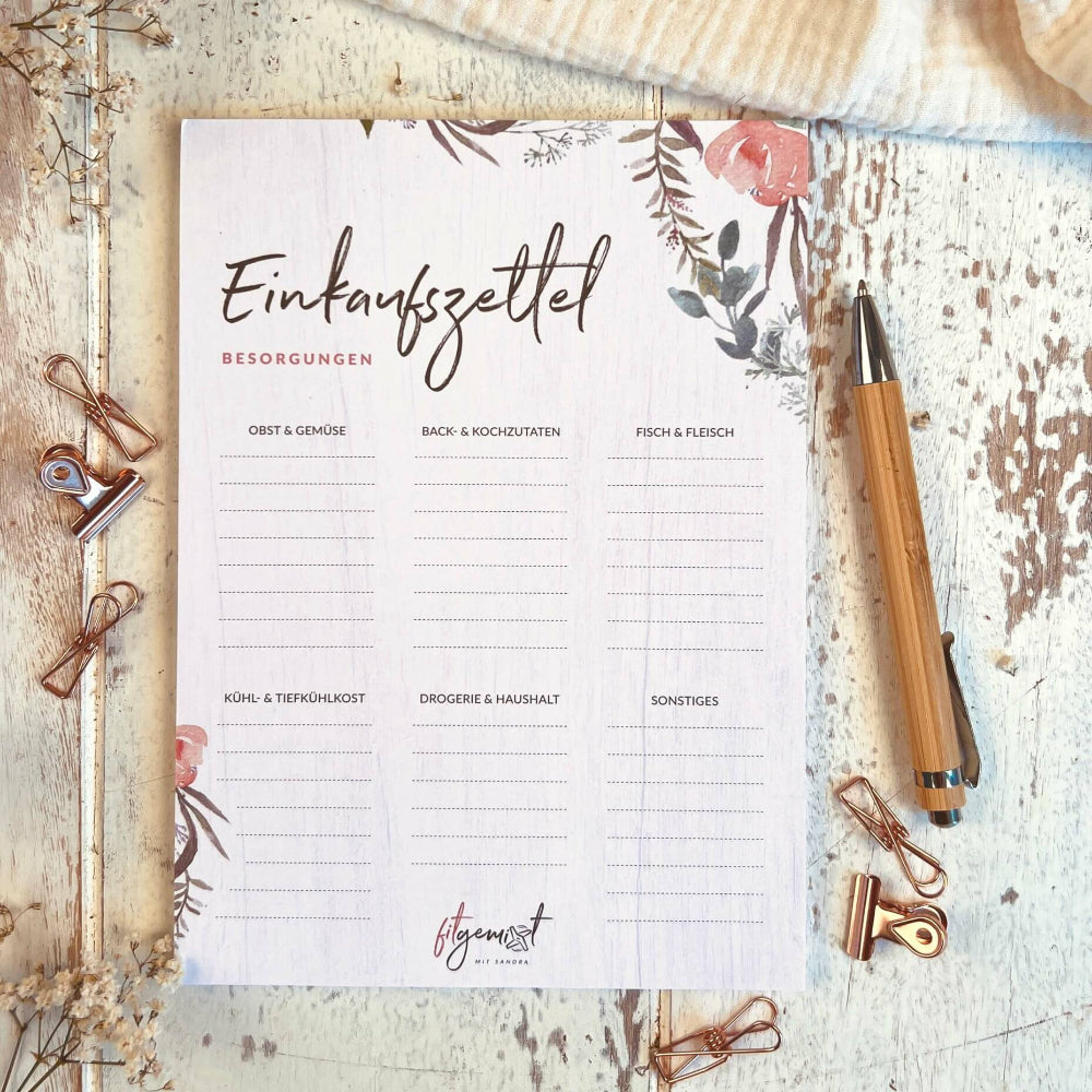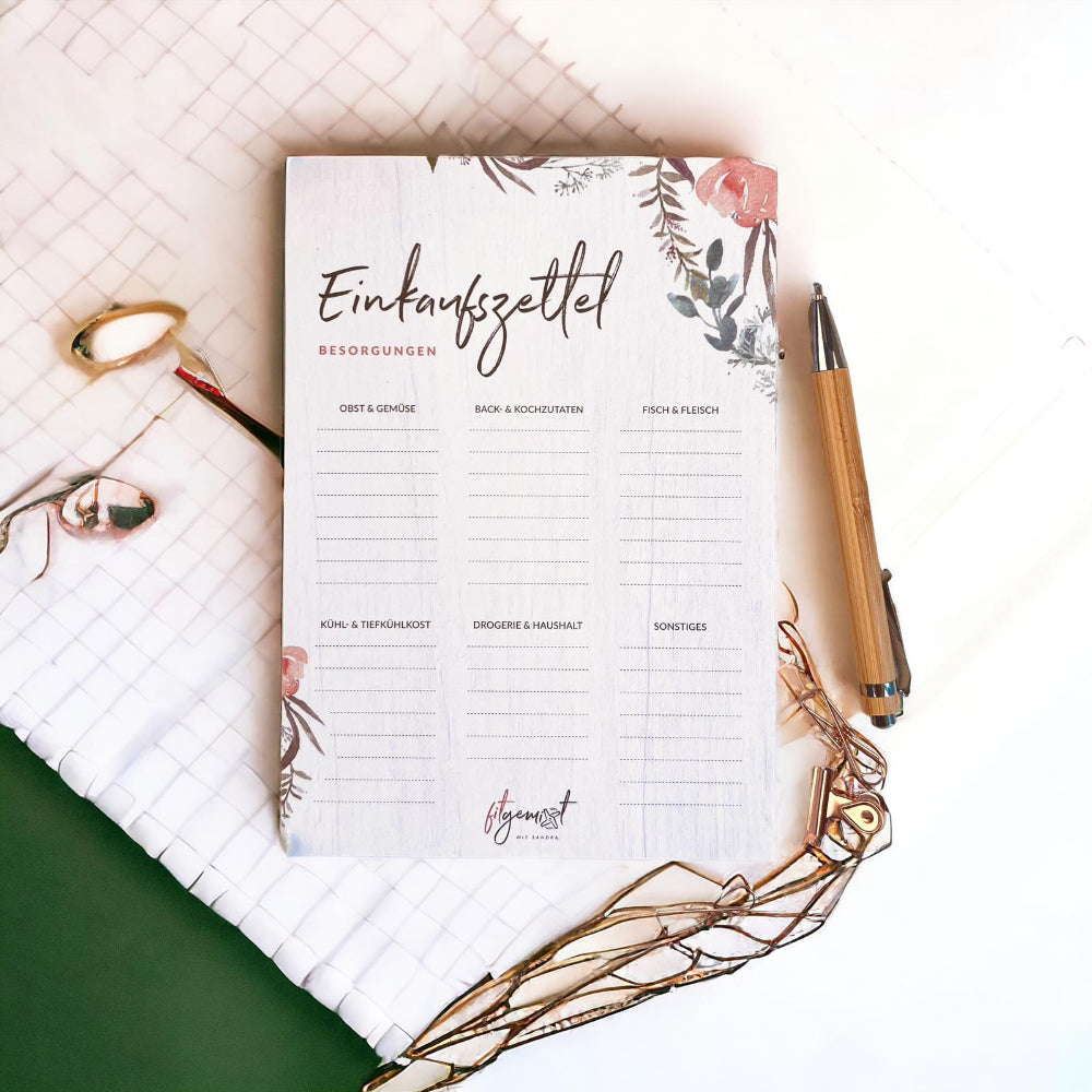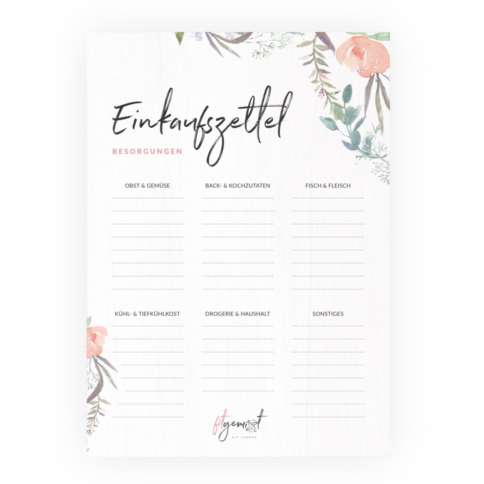 - praktische Einkaufsliste mit 6 übersichtlichen Kategorien für deinen Wocheneinkauf