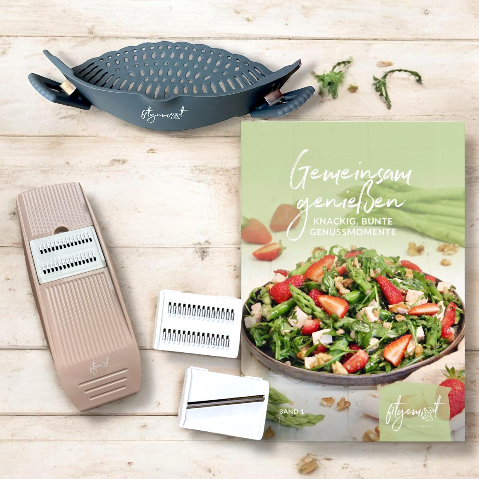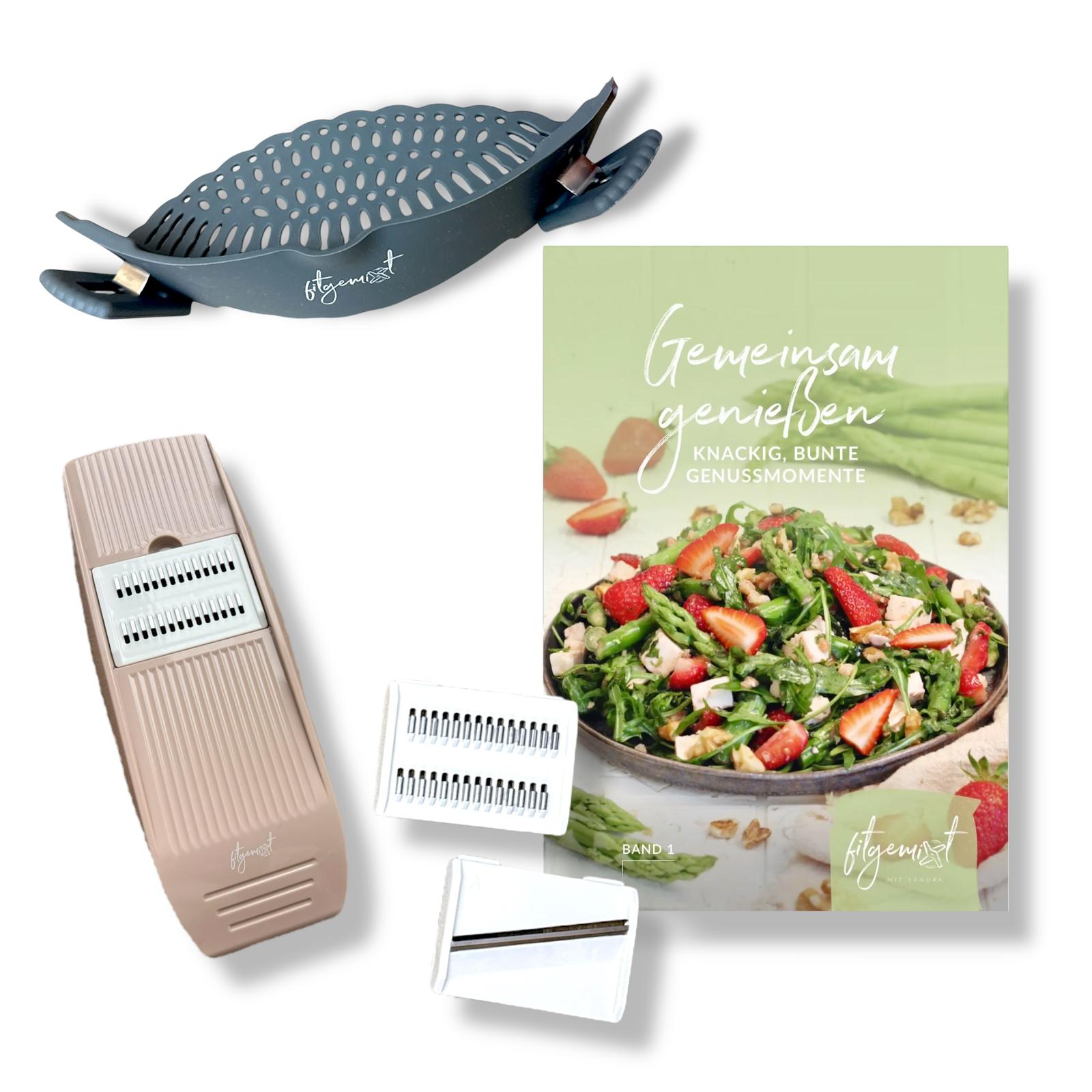 Du kochst gerne schnell und kreativ? Dann ist unser „Genussmomente Classic Set“ bestehend aus unserer praktischen 3-in-1 Küchenreibe, unserer einfach anklickbaren Abgießhilfe und unserem Partyrezeptebuch „Gemeinsam Genießen Band 1“ wie für dich gemacht!