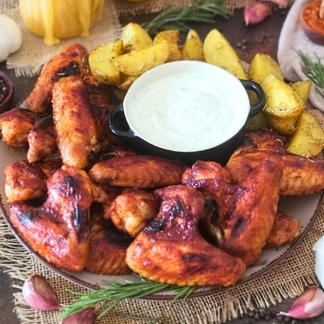 Knusprige Chicken Nuggets ohne Haushaltszucker, serviert mit Dip, in 15 Minuten zubereitet aus dem Diät-Rezepte Kochbuch passend für den Thermomix®* Feel Good Fast Food von Fitgemixt
